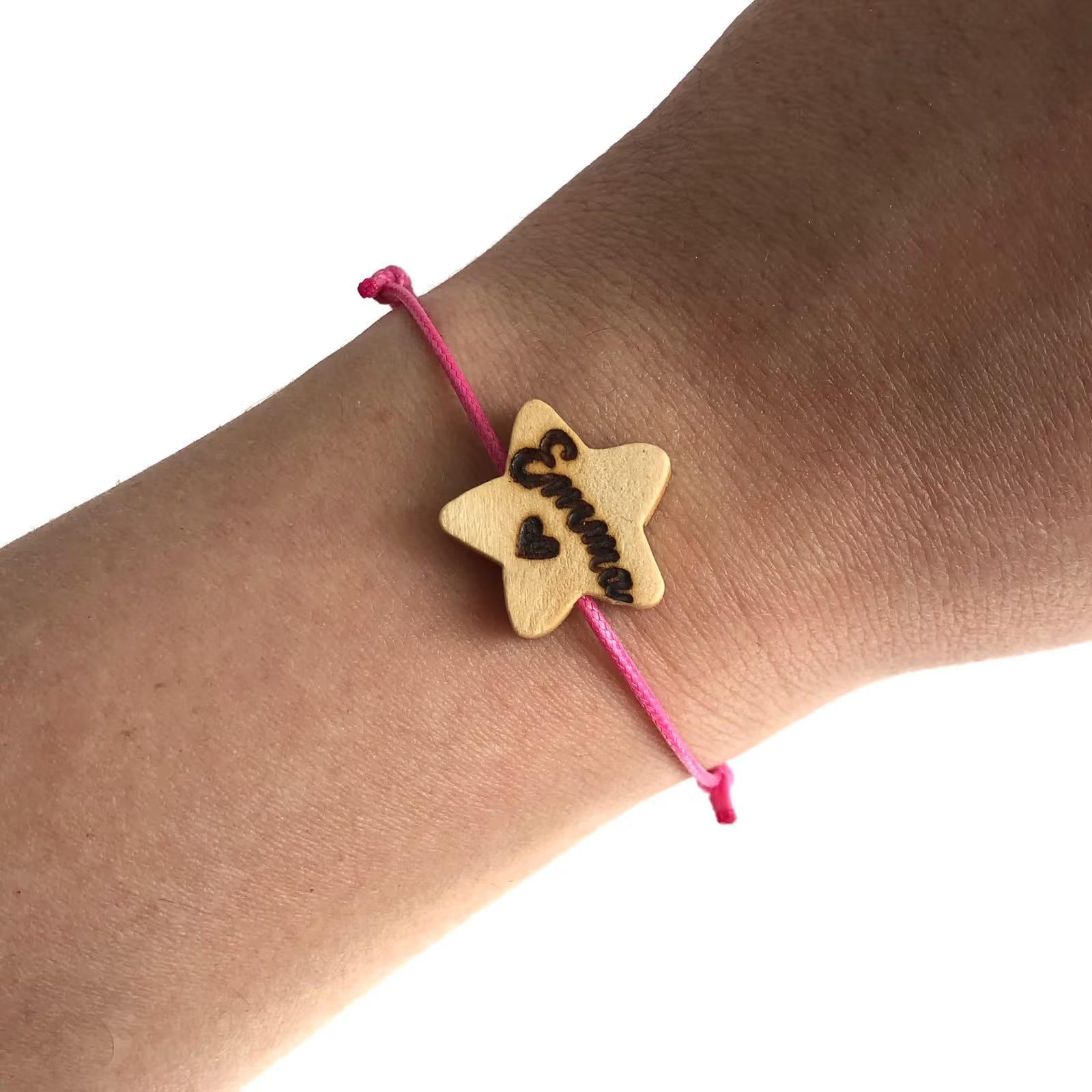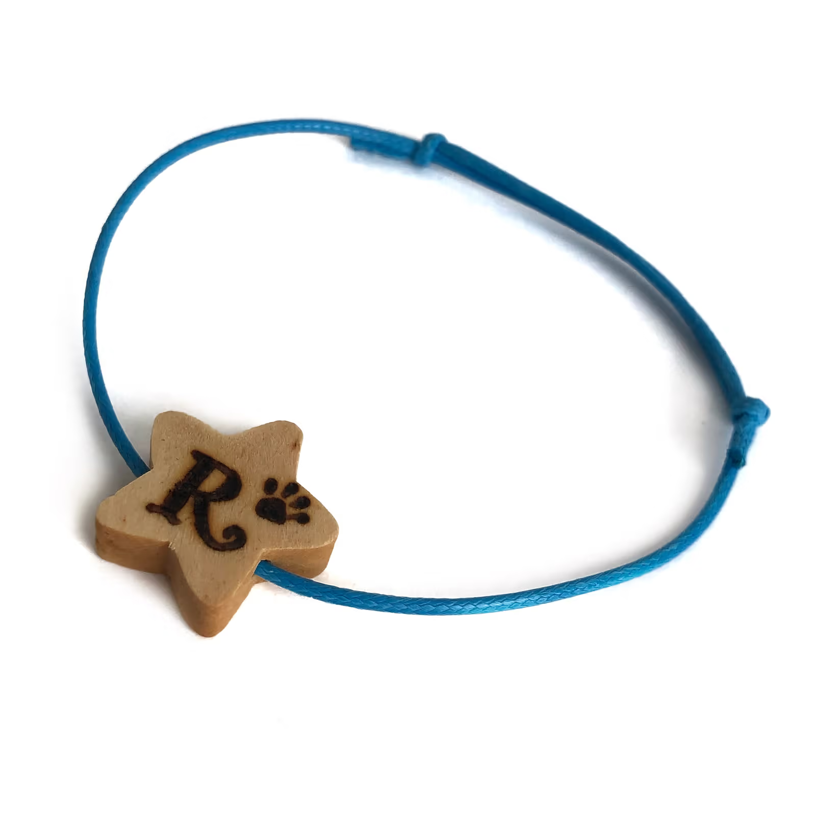 Braçalet de fusta en forma d’estrella personalitzat amb el nom o la inicial.