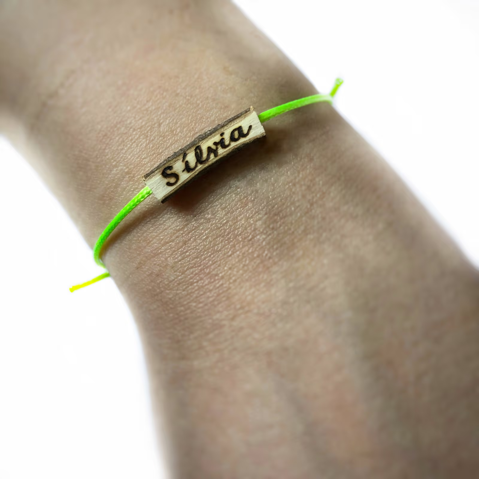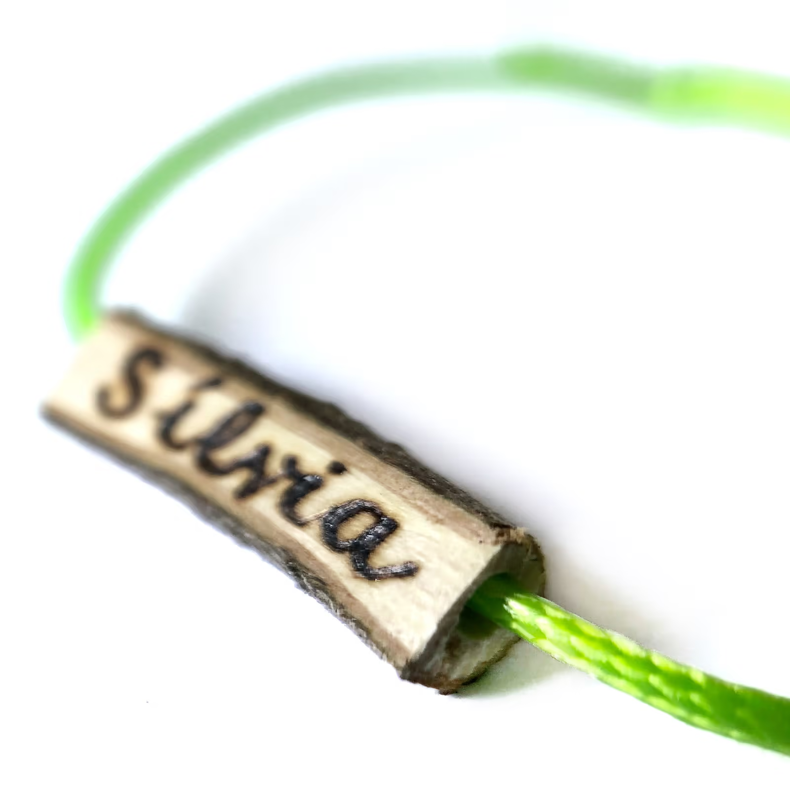 Escriu el teu nom al requadre per personalitzar el teu braçalet. Si prefereixes el braçalet sense personalitzar (el trosset de branca sense tallar), afegeix-lo a la cistella directament i no escriguis cap text en el requadre de personalització.