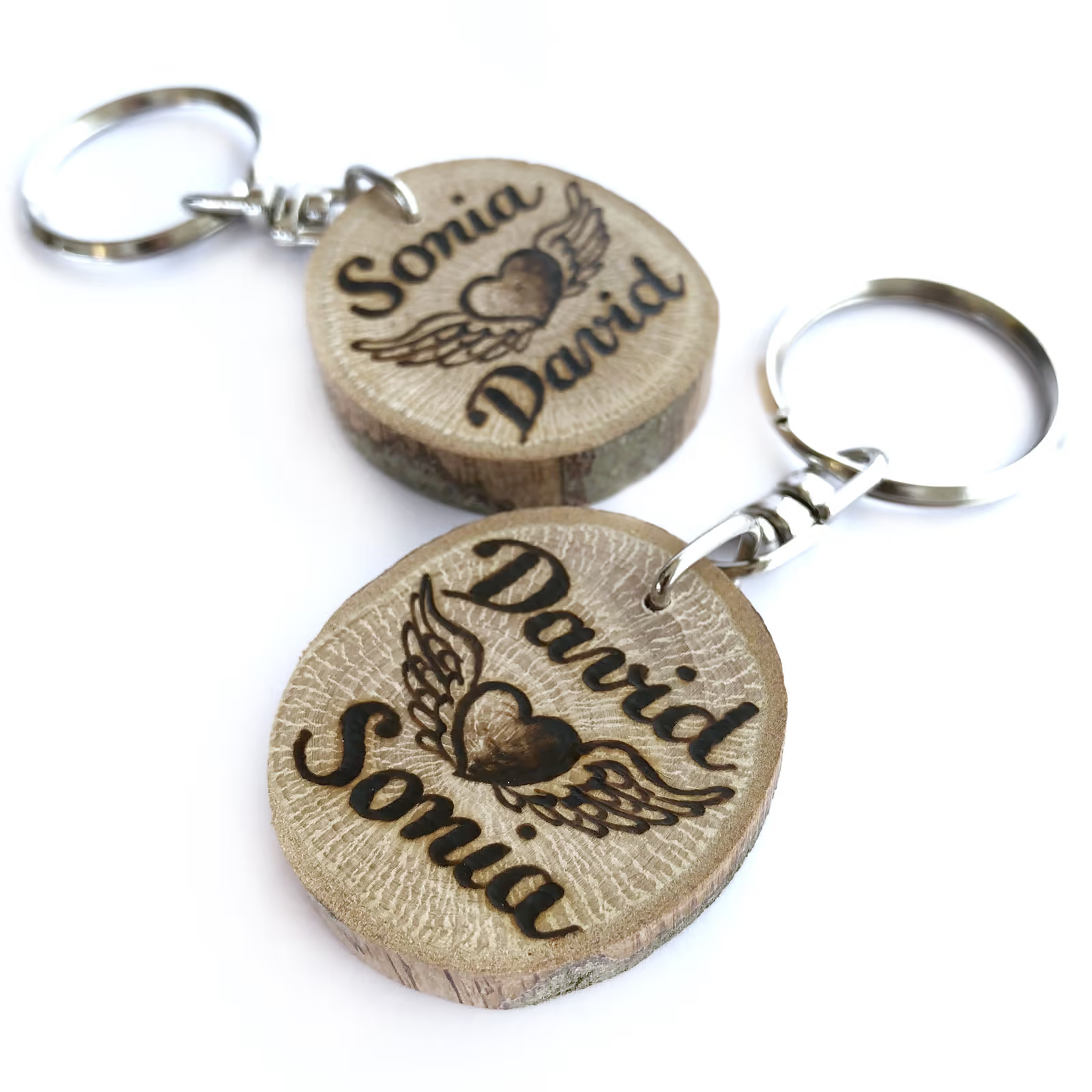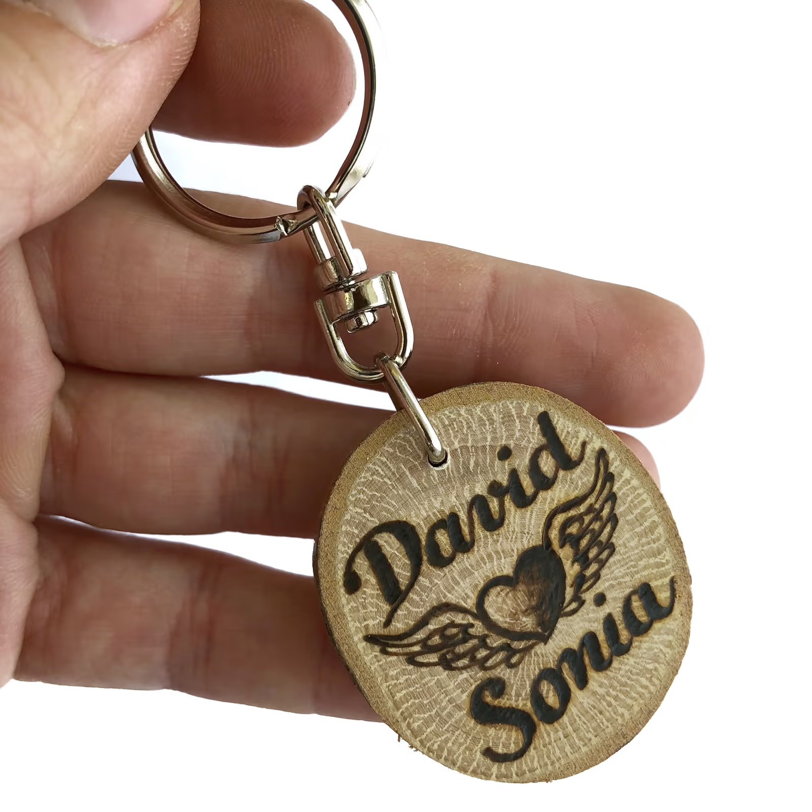 Tingues en compte que el clauer que rebis a casa pot ser lleugerament diferent de les imatges visualitzades ja que tant el nom com el dibuix els pirogravem a mà un a un, amb la qual cosa cada clauer és únic. També la forma i mida de la rodanxa poden variar, perquè a la naturalesa no hi ha 2 branques iguals.