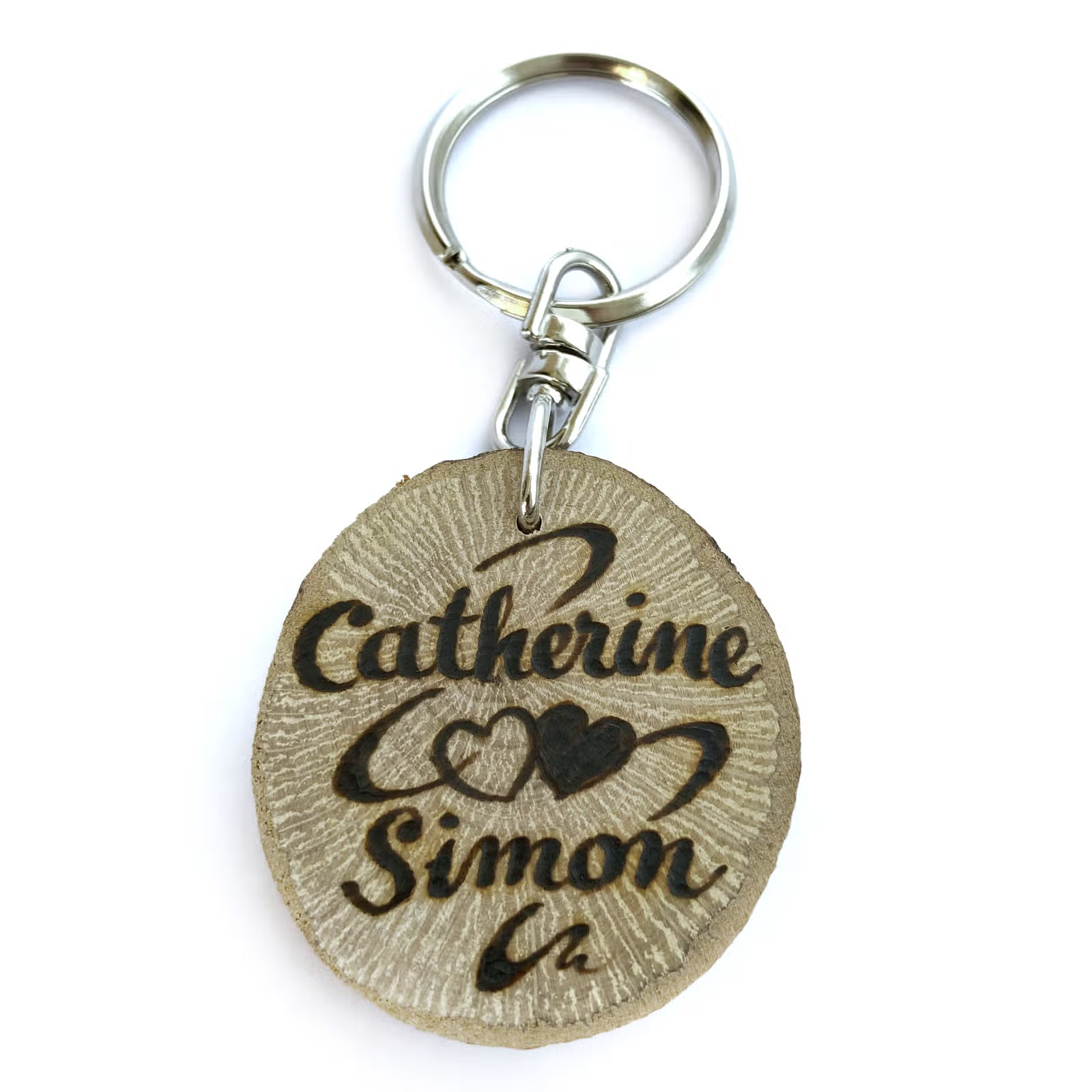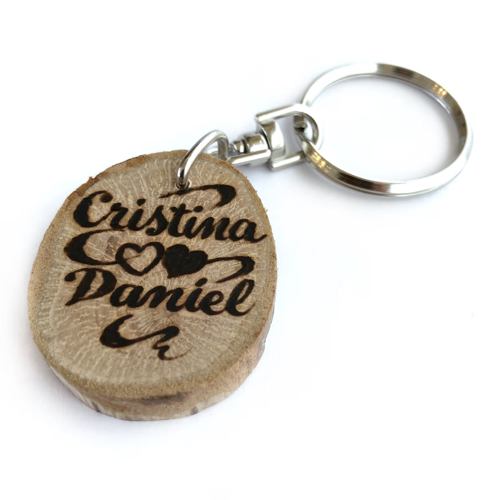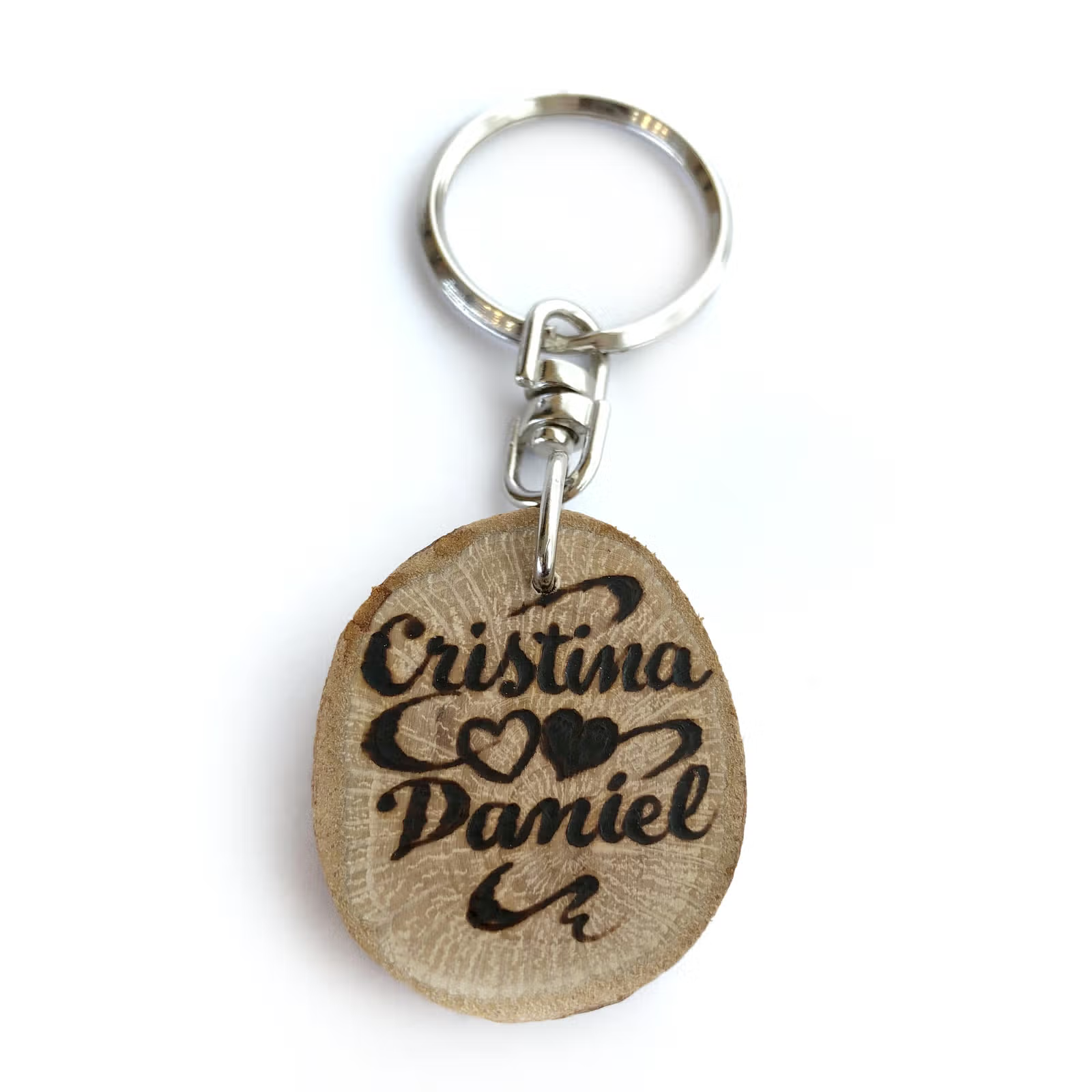 Tingues en compte que el clauer que rebis a casa pot ser lleugerament diferent de les imatges visualitzades ja que tant el nom com el dibuix els pirogravem a mà un a un, amb la qual cosa cada clauer és únic. També la forma i mida de la rodanxa poden variar, perquè a la naturalesa no hi ha 2 branques iguals.