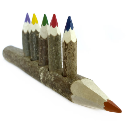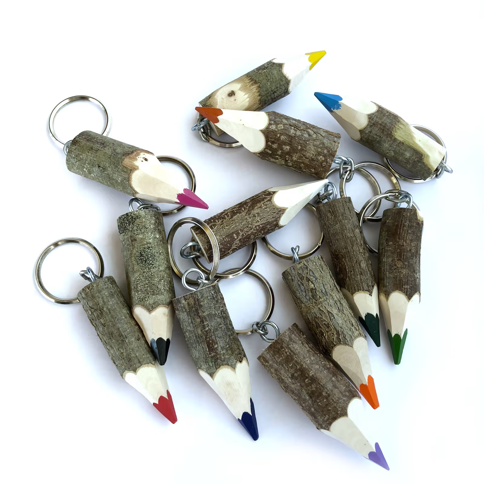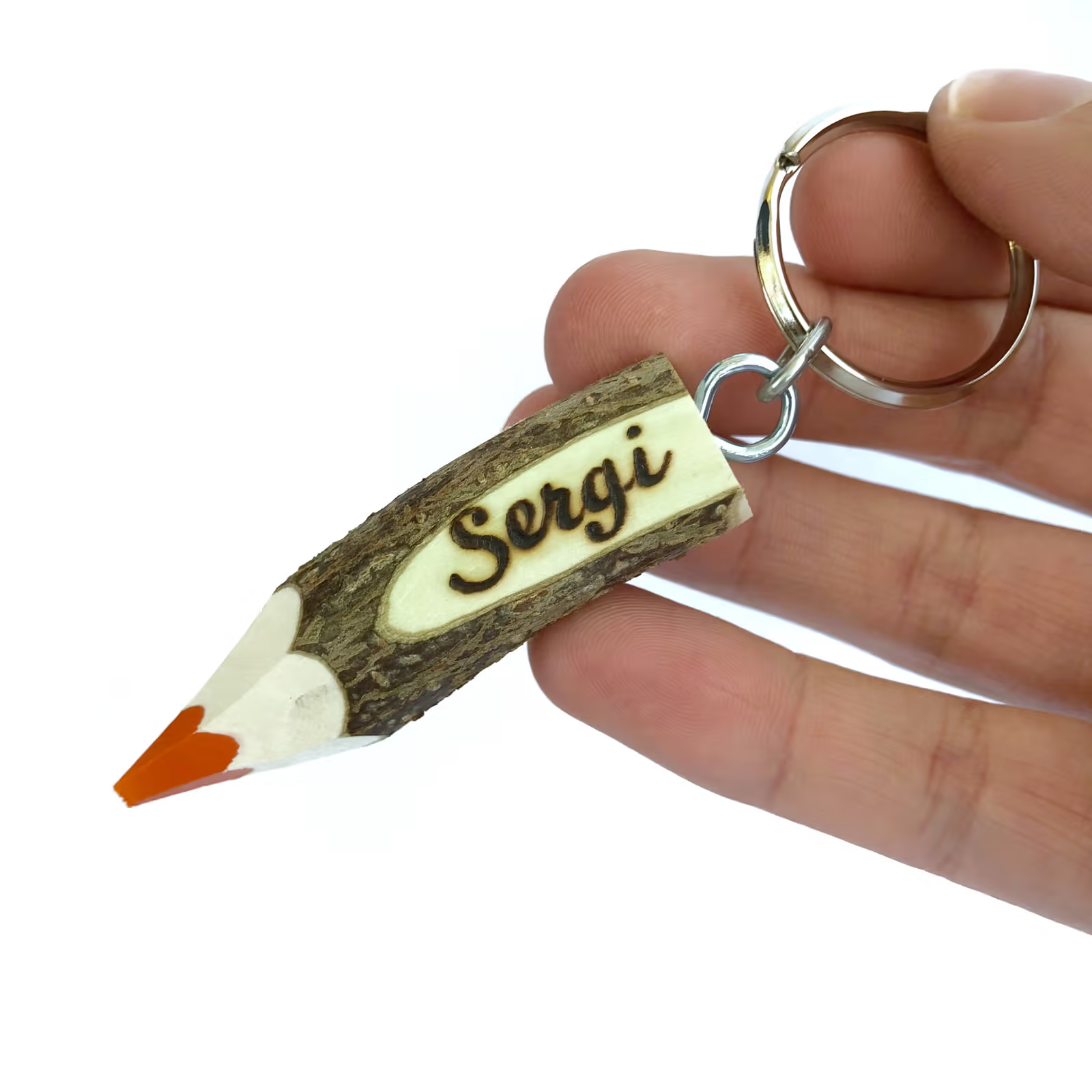 Clauer de llapis de color elaborat de manera totalment artesanal. Fet amb branques d’avellaner recollides per nosaltres.