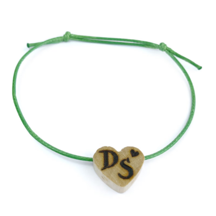 Braçalet de fusta en forma de cor personalitzat amb el nom o la inicial.